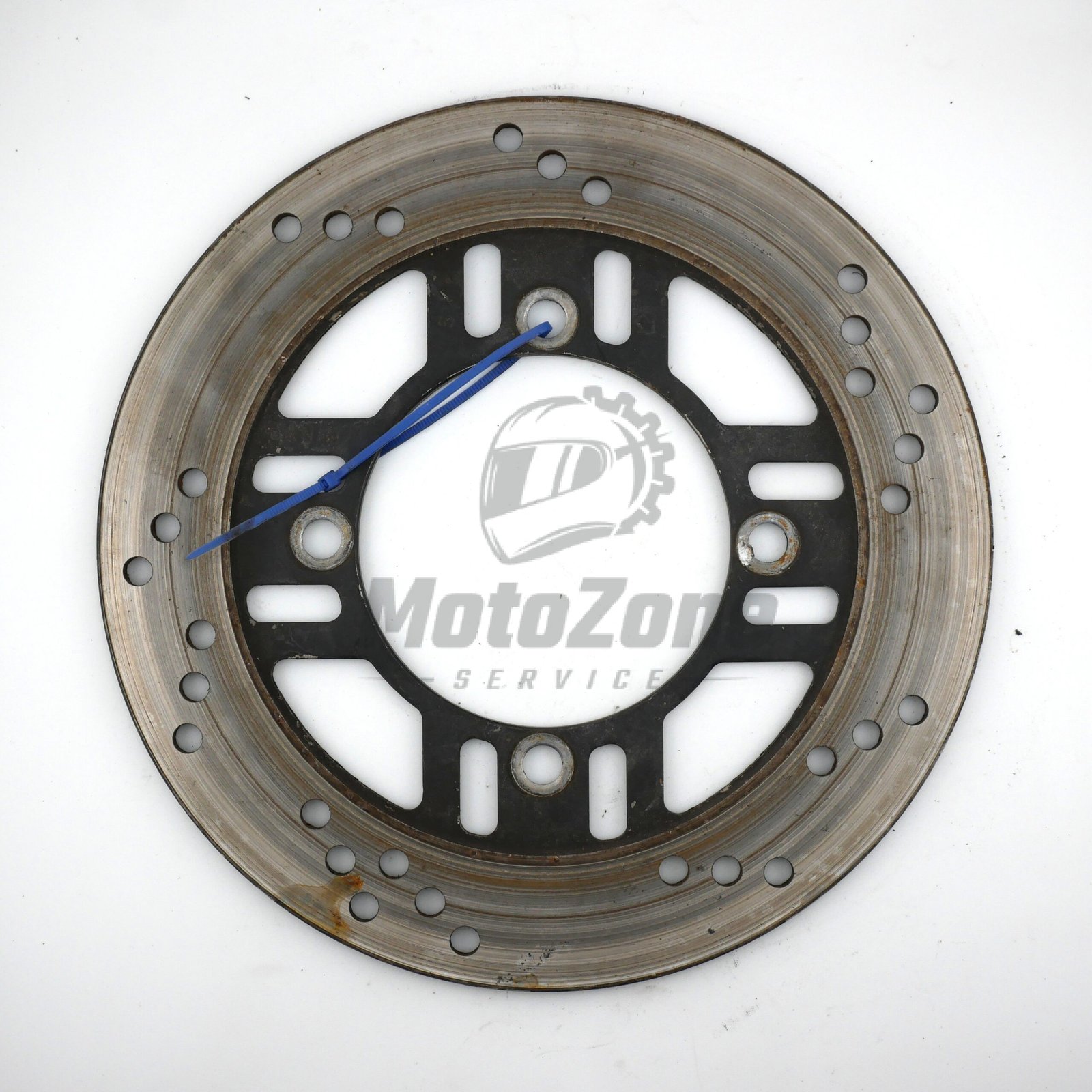 Oryginalna tarcza hamulca tylnego montowana na tylnym kole motocykla.
